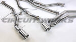 Circuit Werks latest 07-13 BMW 335i xDrive AWD Turbo Dual Exit Mufflerless Catback Exhaust System with Removable Slip on/Clamp on Thick Walled Tips. Fits all 2007-2013 Coupe, Convertible, & Sedan 335i Turbo only (E90/ E92/ E93). Convertible Models will need the under chassis braces either spaced out or modified for this system to clear. True dual 2.5″ Pipings from Downpipe Back Exhaust System. Twin angle cut 4″ / 105mm slip on/Clamp on tips. Will fit the European spec with very minor modification. Fits perfectly between your rear bumper cutout for the exhaust tips. Bolt on to your OEM Downpipes or any aftermarket ones with our supplied hardware and gaskets (includes all necessary gaskets, clamps for the exhaust tips and other hardware for install). Also available in Mufflered Options as well with Polished, Brush Finish, or Black Edition Tips version.
