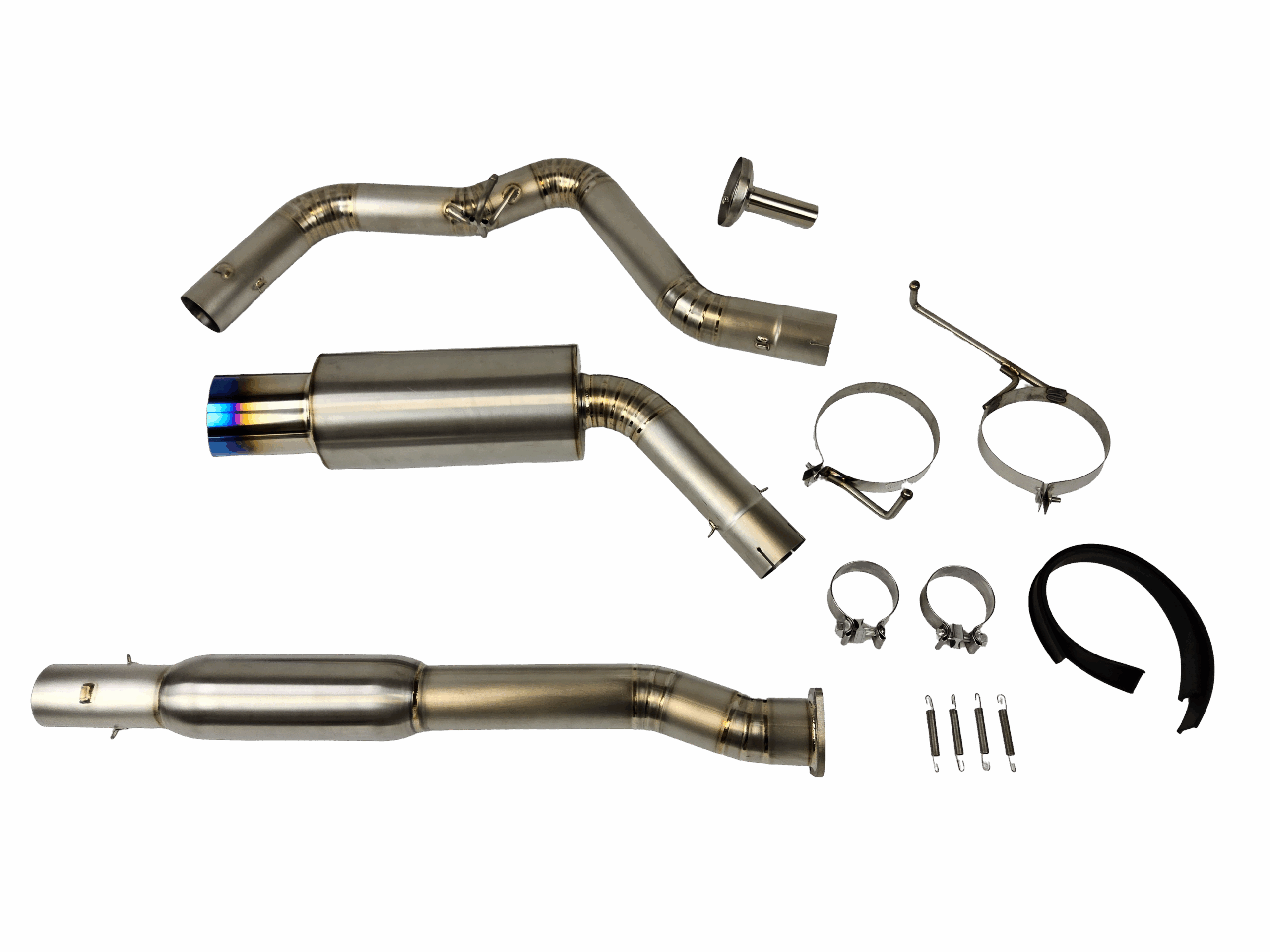 The full titanium exhausts are designed to offer exceptional lightweight durability and enhanced performance. Featuring fully TIG-welded construction, these exhausts include high-quality bends that ensure a clean appearance and optimal exhaust flow. With a smooth matte finish and a distinctive burnt tip, they not only deliver impressive functionality but also a visually appealing aesthetic.