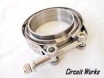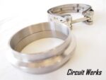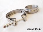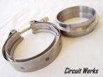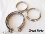Circuit Werks latest 2.25″ / 57mm V-Band Clamp and Flanges. This V-band clamp are made out of Stainless Steel and the flanges are made out of Mild Steel. 2-1/4″ / 58mm inner diameter. Each flange wall thickness is 2.3mm. The V-Band clamp comes with a nylon insert heavy duty hex locknuts, to provide extra strength and greater thread engagement. These locknuts are thicker than standard nylon-insert locknuts. When fully tightened, the nylon insert provides vibration resistance and prevents loosening—without damaging mating threads. All the flanges are CNC cut for precision. Perfect for your custom exhaust, mid-pipe, downpipe, custom turbo kits, and more…
