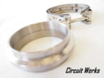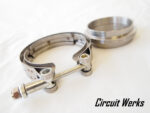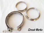 Circuit Werks latest 3″ / 76mm V-Band Clamp and Flanges. This V-band clamp are made out of Stainless Steel and the flanges are made out of Mild Steel. 3″ / 76mm inner diameter. Each flange wall thickness is 2.3mm. The V-Band clamp comes with a nylon insert heavy duty hex locknuts, to provide extra strength and greater thread engagement. These locknuts are thicker than standard nylon-insert locknuts. When fully tightened, the nylon insert provides vibration resistance and prevents loosening—without damaging mating threads. All the flanges are CNC cut for precision. Perfect for your custom exhaust, mid-pipe, downpipe, custom turbo kits, and more…